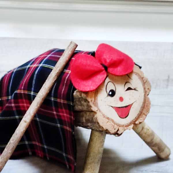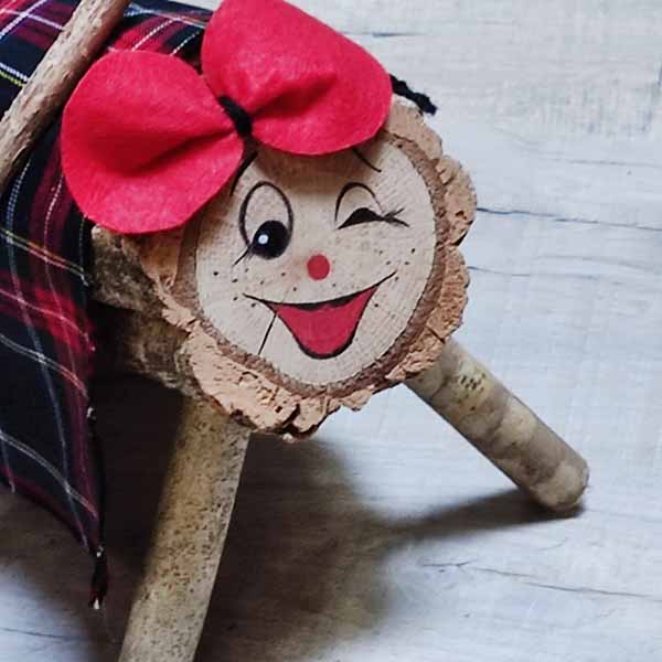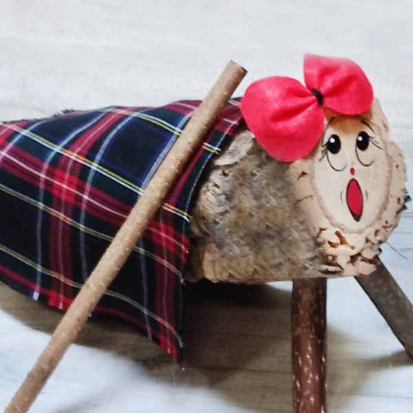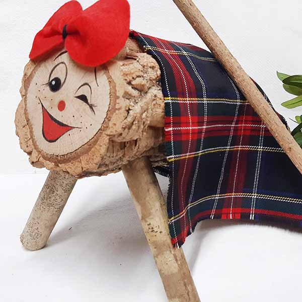 - Accessoris: Manta de quadres, llaç de feltre. pal de castanyer per enganxar.