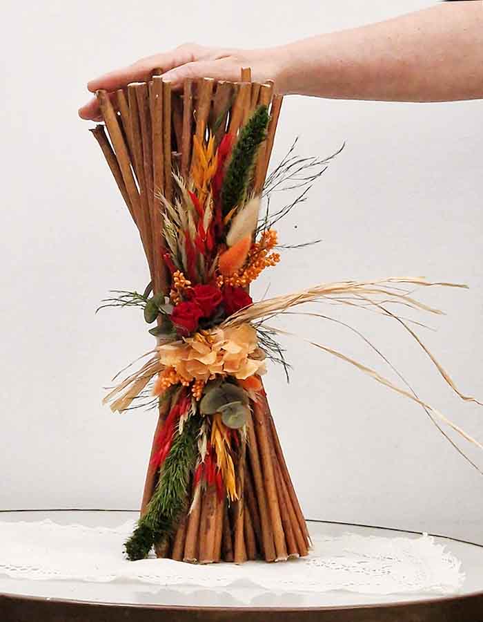 Aquesta Gavella Rústica de Flors i Vímets. Amb flors preservades és l’element superdecoratiu que la teva llar necessita. Aquest manoll de vímets lligats amb ràfia t’omplirà l’espai dels colors vibrants i plens de vida dels boscos de tardor: taronges, verds, vermells, grocs, ocres i una exquisida barreja de flors naturals, seques i preservades.