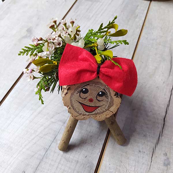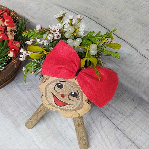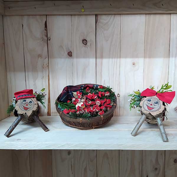 Aquesta combinació de Caga Tió i adorn floral uneix dos símbols de la tradició catalana de Nadal: la il·lusió dels regals i la prosperitat del vesc. Un detall únic fet amb amor al nostre taller artesà que guardaràs durant molts anys.